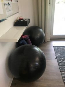 Das sind unsere Gymnastikbälle und Yoga-Matten. Die haben wir Anfang des Jahres hochmotiviert angeschafft. Wegen Rücken, Schulter, zu viel Sitzen. Es ist wie so oft: Wenn nicht jemand die Sache anpackt, dann passiert auch nichts. Sissi packt es jetzt an. Wenn sie das nächste Mal im Büro ist, gibt es Übungen!